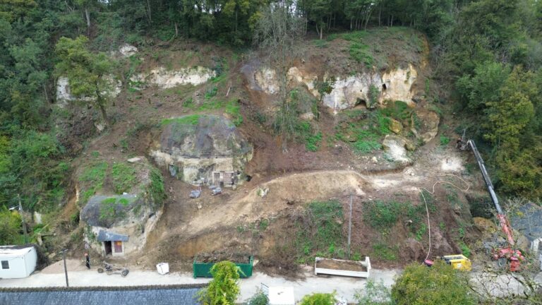 Nous avons sécurisé la départementale 917 à Montoire-sur-le-Loir après un effondrement du coteau en mars 2022, assurant la réouverture de la route grâce à des travaux de stabilisation pour une circulation sécurisée.