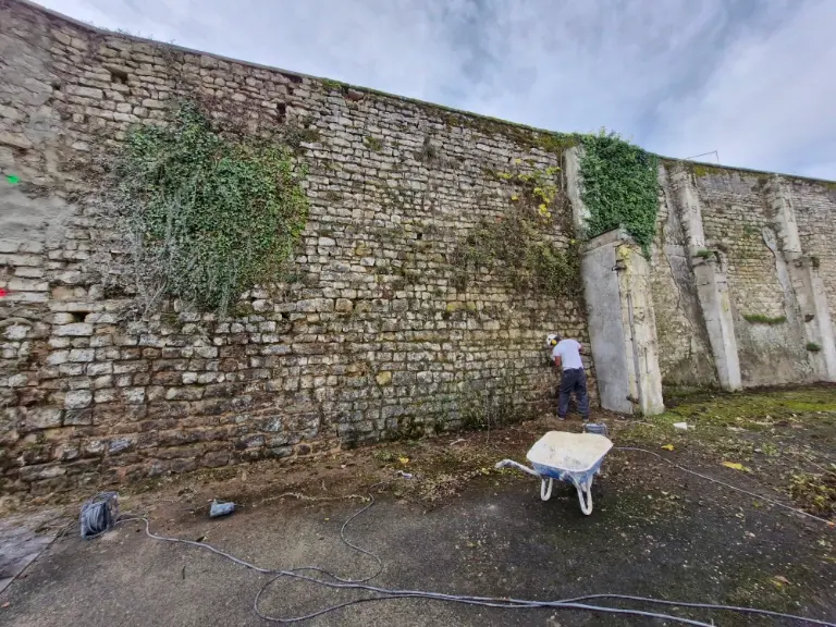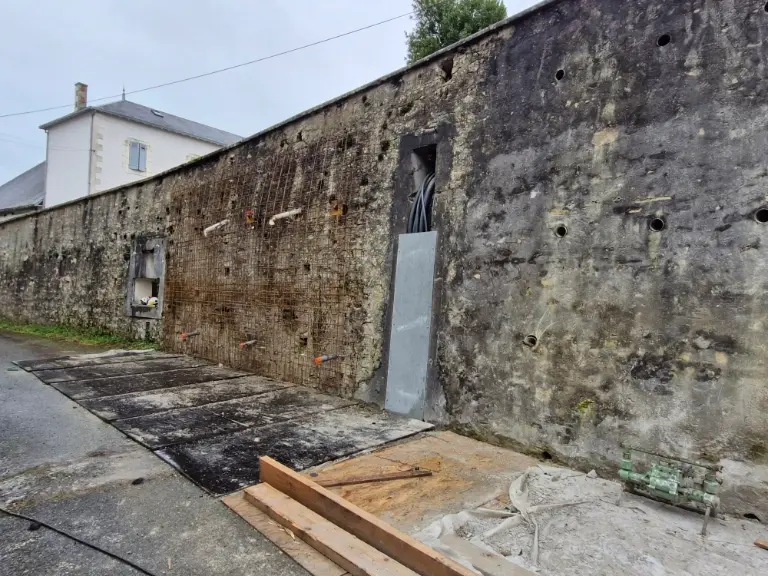 - Drainage pérenne : Pose de barbacanes pour assurer l’évacuation des eaux et prévenir les futures poussées hydrostatiques.