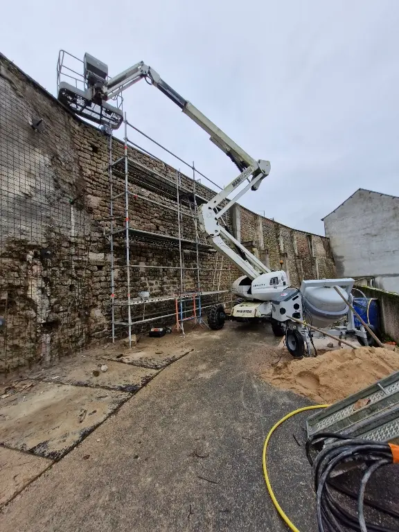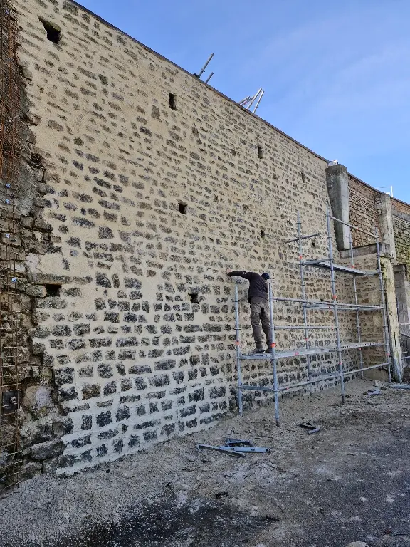 - Maçonnerie technique : Réalisation d’une finition « teinte pierre » pour préserver l’esthétique patrimoniale de l’ouvrage.